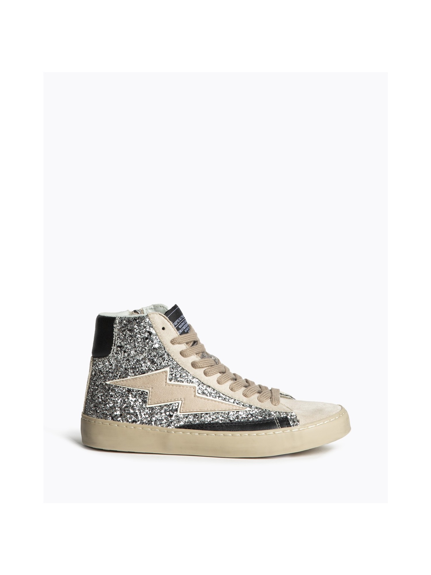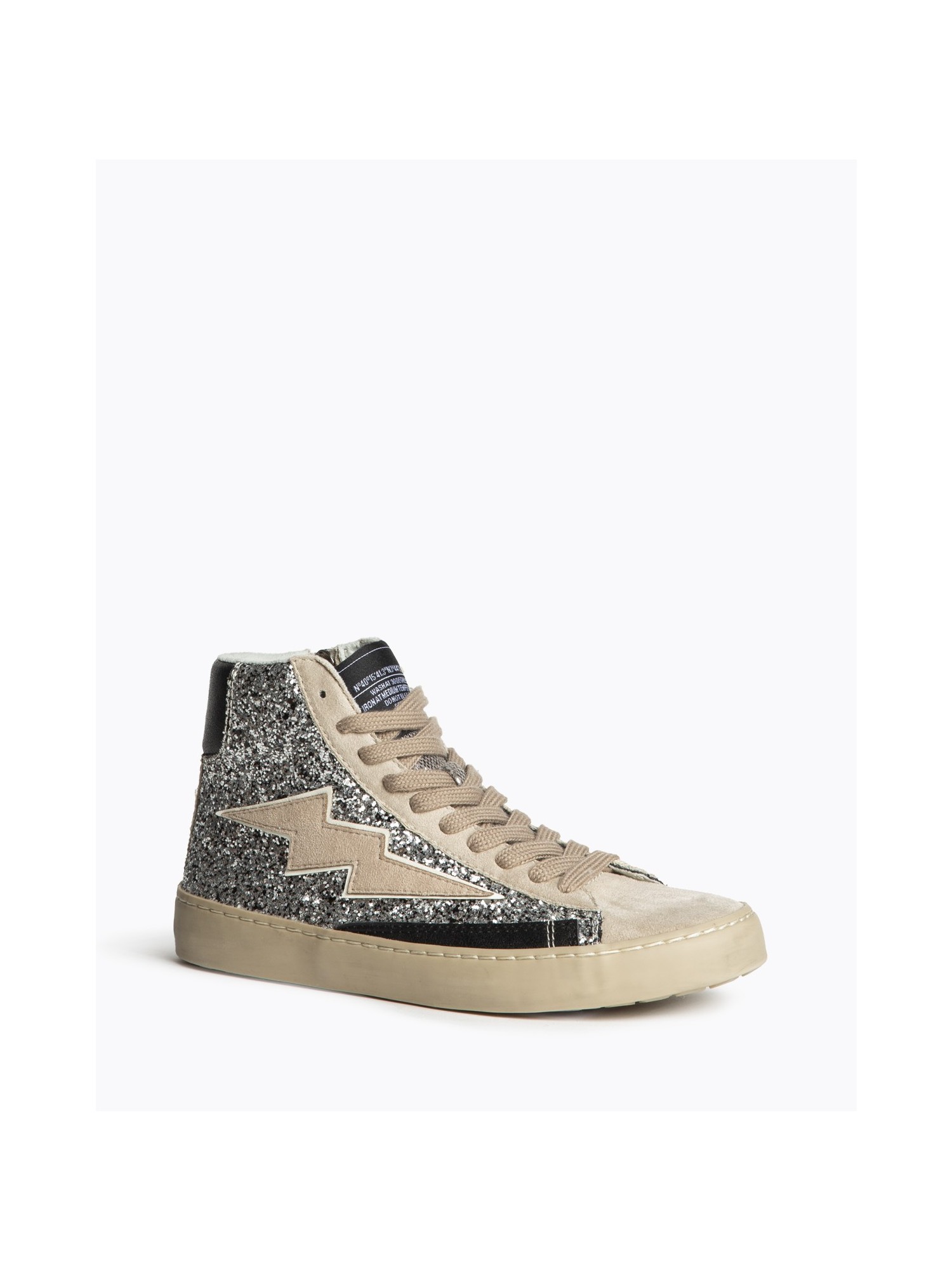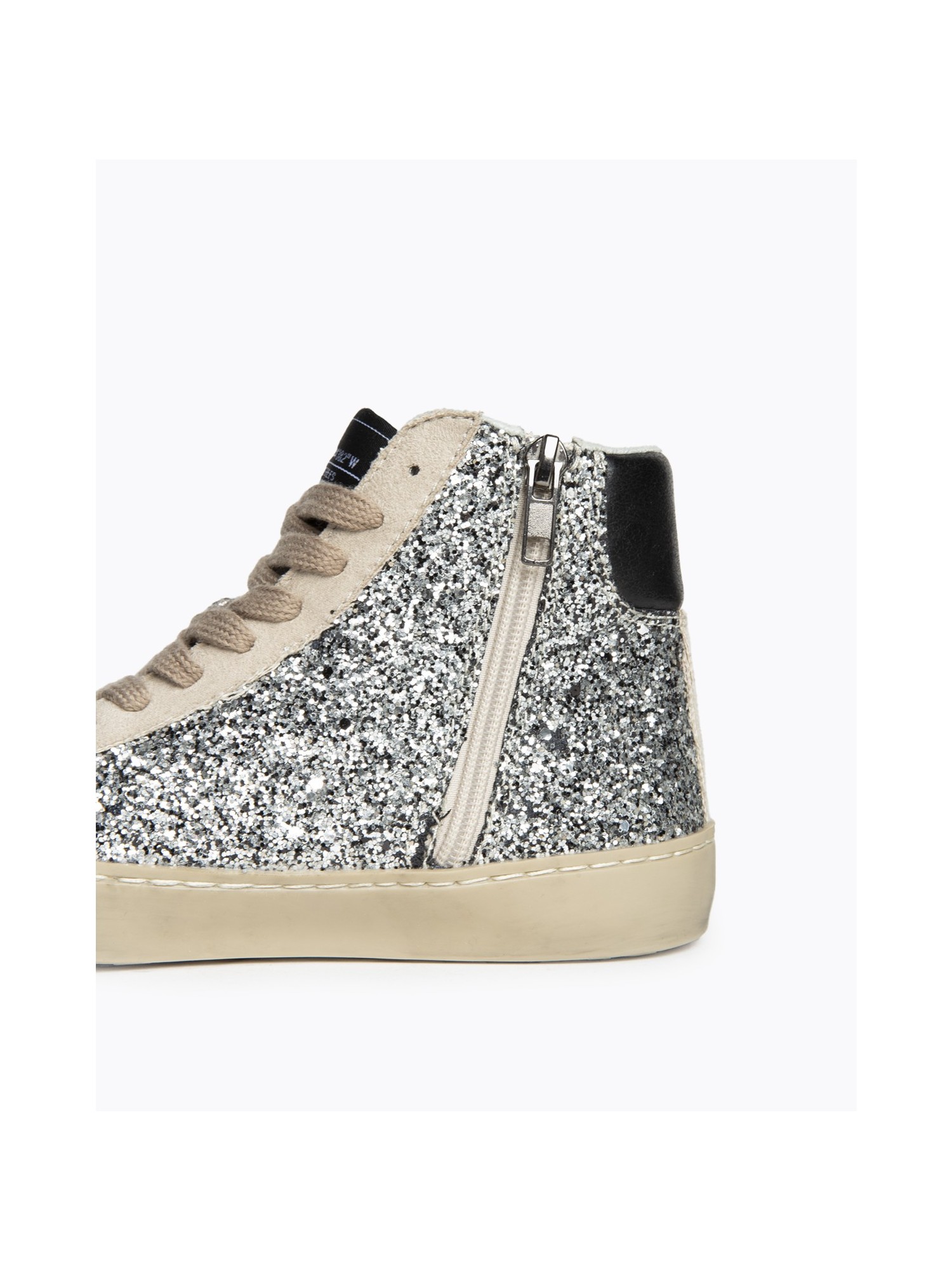Zapatilla abotinada CORINA 5506 con exterior glitter plateado y rayo lateral, combinando estilo urbano y confort. Cierre de cordones y cremallera lateral interior para un calce fácil. Diseño atrevido y moderno, perfecto para destacar en looks casuales o deportivos.